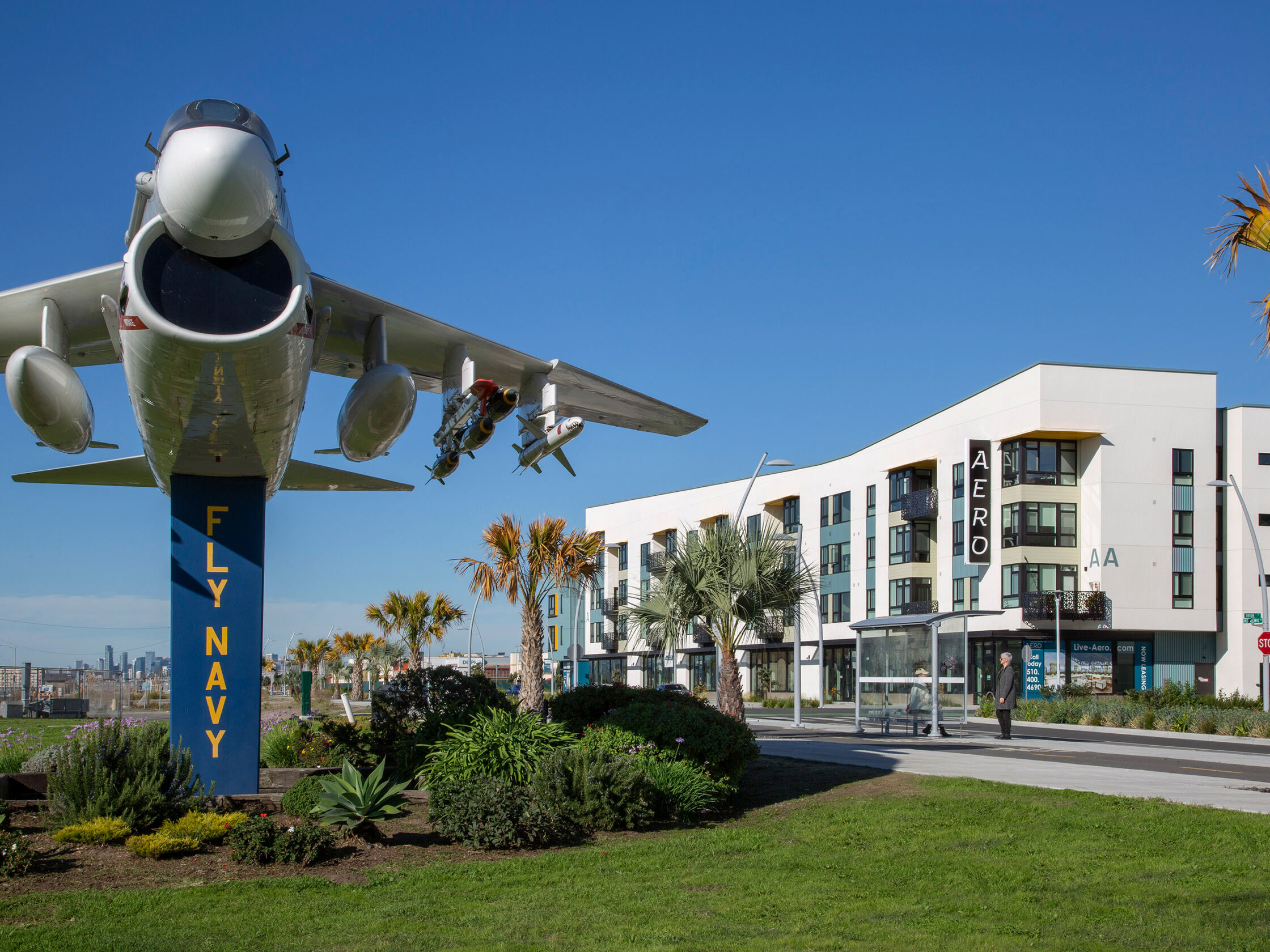AERO Apartments plays a significant role in the 68-acre, 1,300-home redevelopment at the former Alameda Naval Air Station, an important area of growth for the island intent on reducing automobile reliance and minimizing impact to the environment. The overall Alameda Point Site A will create a cohesive, transit-oriented community with residential, retail, commercial, office and enterprise spaces served by a new waterfront park and ferry terminal.